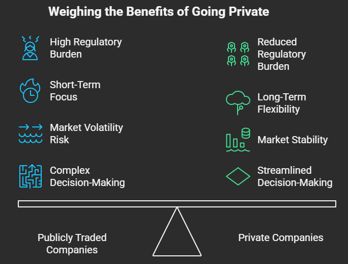 - Avoid short-term market scrutiny: The company could make tough decisions, like streamlining operations or exiting less profitable segments, without worrying about immediate stock price drops.